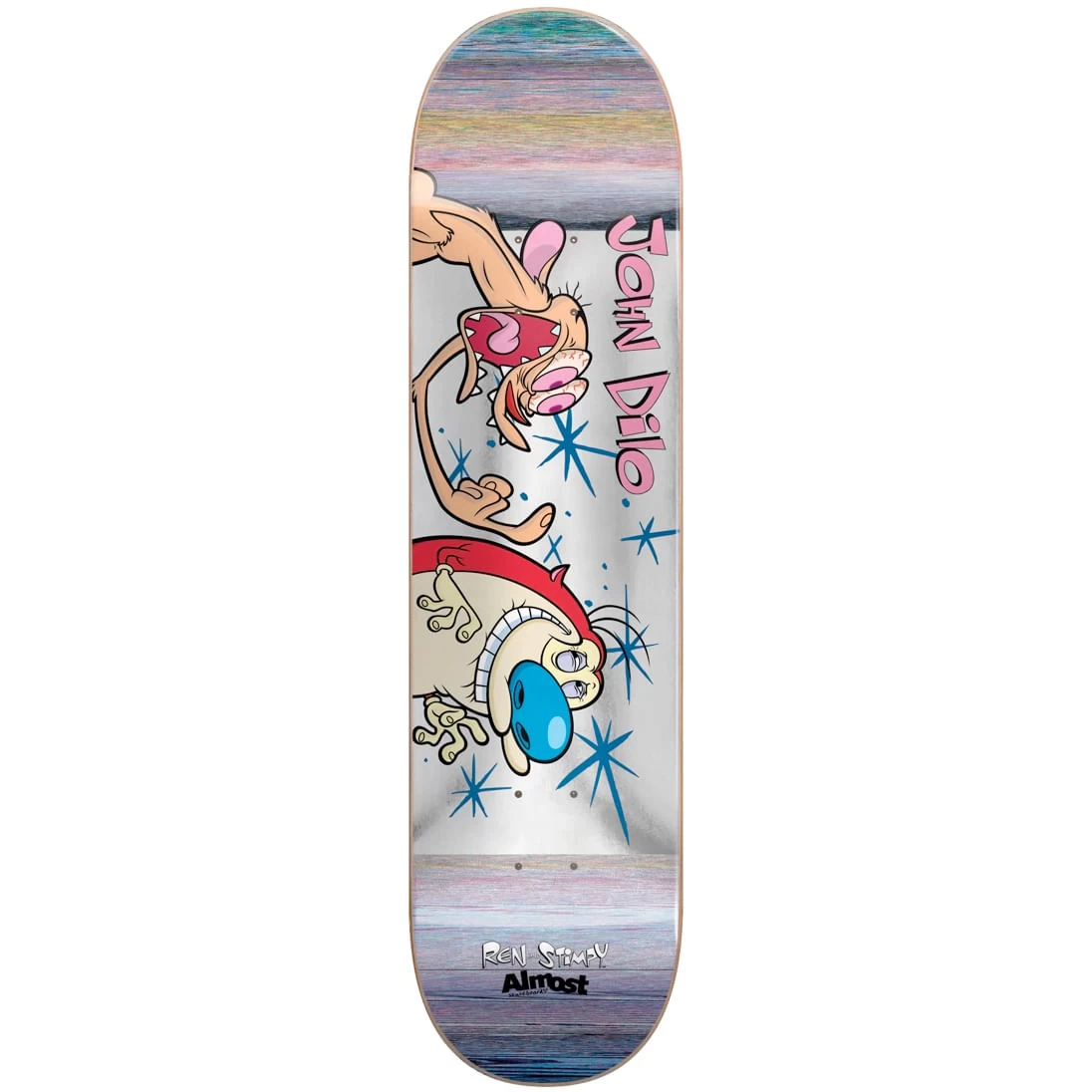 Build up the perfect board with the Almost Dilo Ren and Stimpy Skateboard Deck. The Resin-7 Canadian Maple construction uses an epoxy that allows for more strength with less glue, making it lightweight, stiff and long lasting. This Almost Skateboard Deck was specifically designed for durability and performance. The Resin deck is lighter and keeps it’s pop longer than normal water based decks.