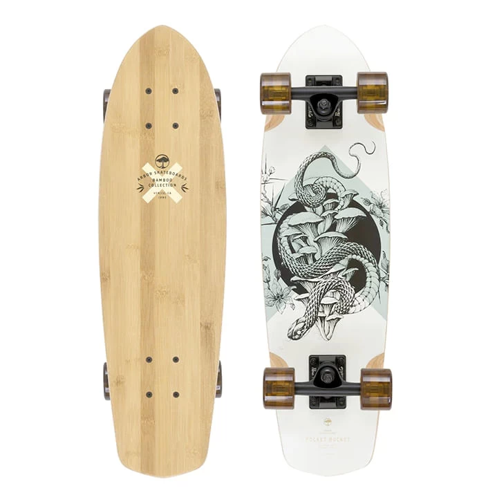 The Arbor Bamboo Pocket Rocket Longboard is a stashable mini-cruiser for snappy turns, quick maneuvers and fun local commutes.