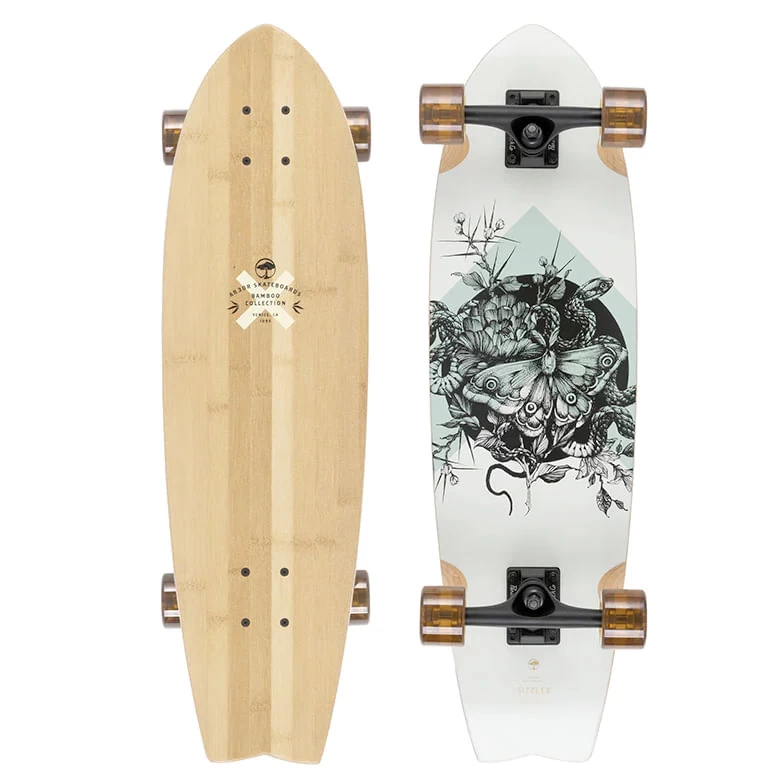 The Arbor Bamboo Sizzler Longboard is a swallowtail thruster for slashing banks, powering down any line, or carving tight pocket turns.