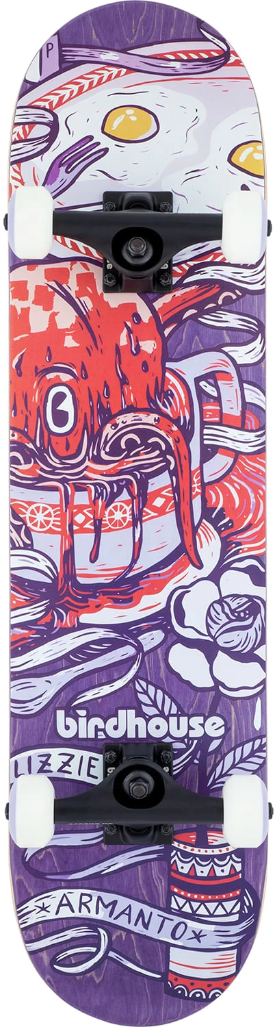 Dial in and nail new tricks with the Birdhouse Armanto Faves Complete Skateboard. The 7 ply maple construction offers professional quality for all ages. This Birdhouse Complete Skateboard was specifically designed for durability and performance. The deck is lightweight and delivers pop and stability so you can shred with style.