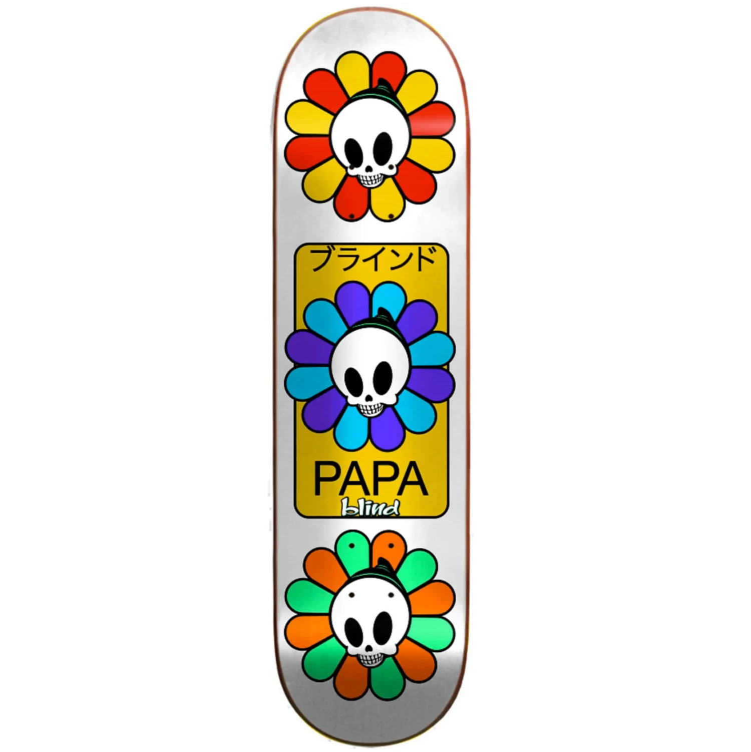 Build up the perfect board with the Blind Micky Papa Reaper Bloom R7 Skateboard Deck. The Resin-7 Canadian Maple construction uses an epoxy that allows for more strength with less glue, making it lightweight, stiff and long lasting. This Blind Skateboard Deck was specifically designed for durability and performance. The Resin deck is lighter and keeps it’s pop longer than normal water based decks.
