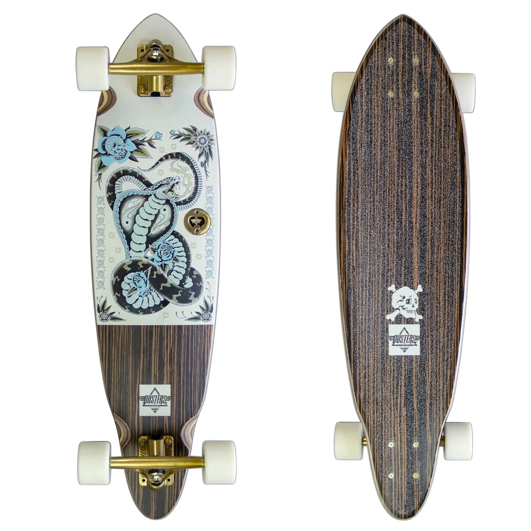 Cruise the sidewalks and surf the streets on the Dusters Serpent Longboard. At 33” long, this board is super fun to skate and easy to carry around. This board is made from high-quality parts and is perfect for beginner to advanced use all around town!
