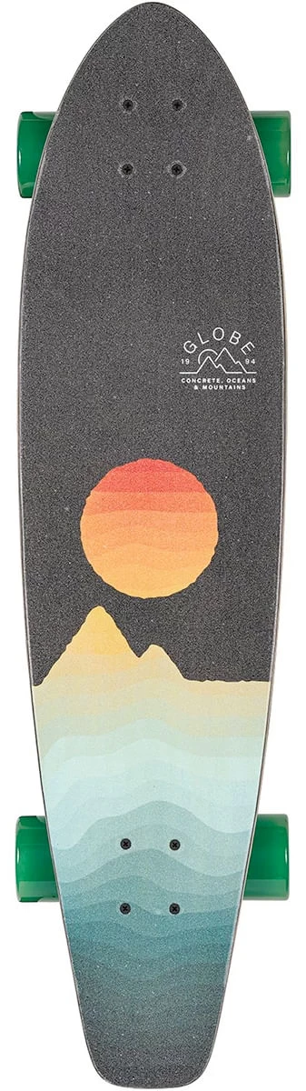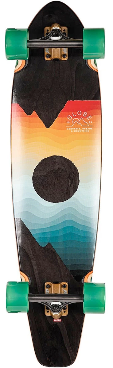 The Globe Arcadia Longboard is a classic long wheelbase cruiser shape with no kick and bigger than average wheels. The bamboo + hard rock maple deck features subtle W concave with rocker profile. Also featuring 150mm Slant reverse kingpin trucks, 74mm 78a wheel and printed griptape.