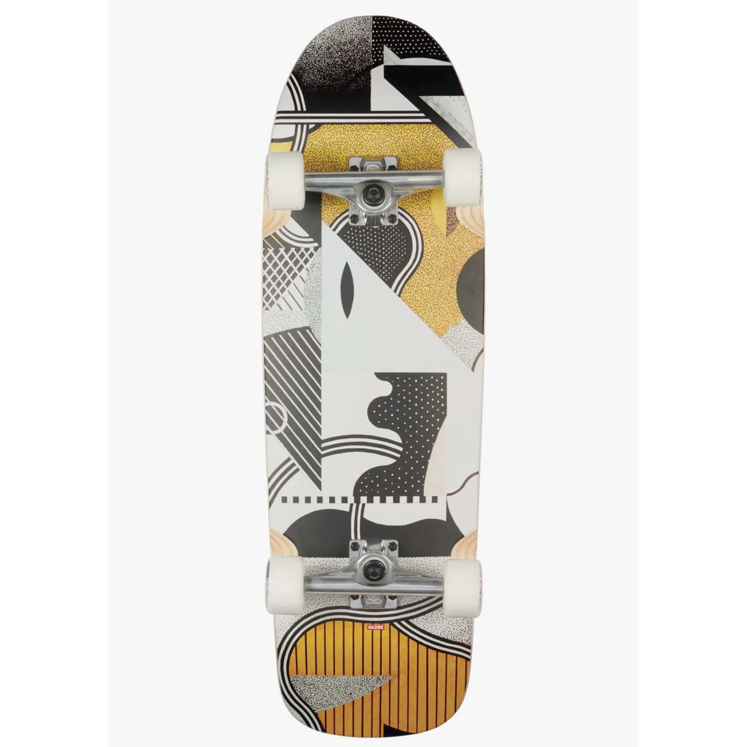 Wide bowl ripping cruiser with mellow side-to-side concave, full nose and tail. The Globe Chopper is a 32 inch, mid-size cruiser board featuring Resin-7 hard rock maple deck with artwork by featured artist, Andre Razo. Also includes 6.5” Tensor alloy trucks with Grade-8 kingpins, high-rebound urethane bushings and 62mm 88a Bruiser Cruiser wheels. Finished with die-cut grip tape with top print.