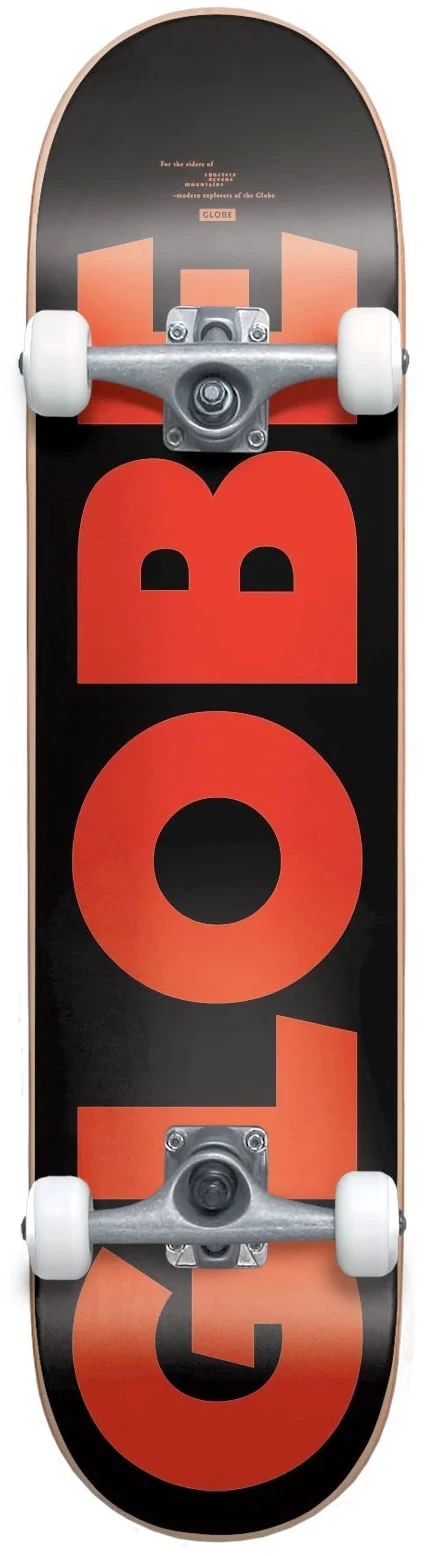 The Globe G0 Fubar Complete Skateboard is a basic logo board with a mellow concave and steep kick. Featuring deck constructed from Resin-7 hard rock maple, 5.25 Slant trucks, 52mm 99a wheels, and black grip tape.