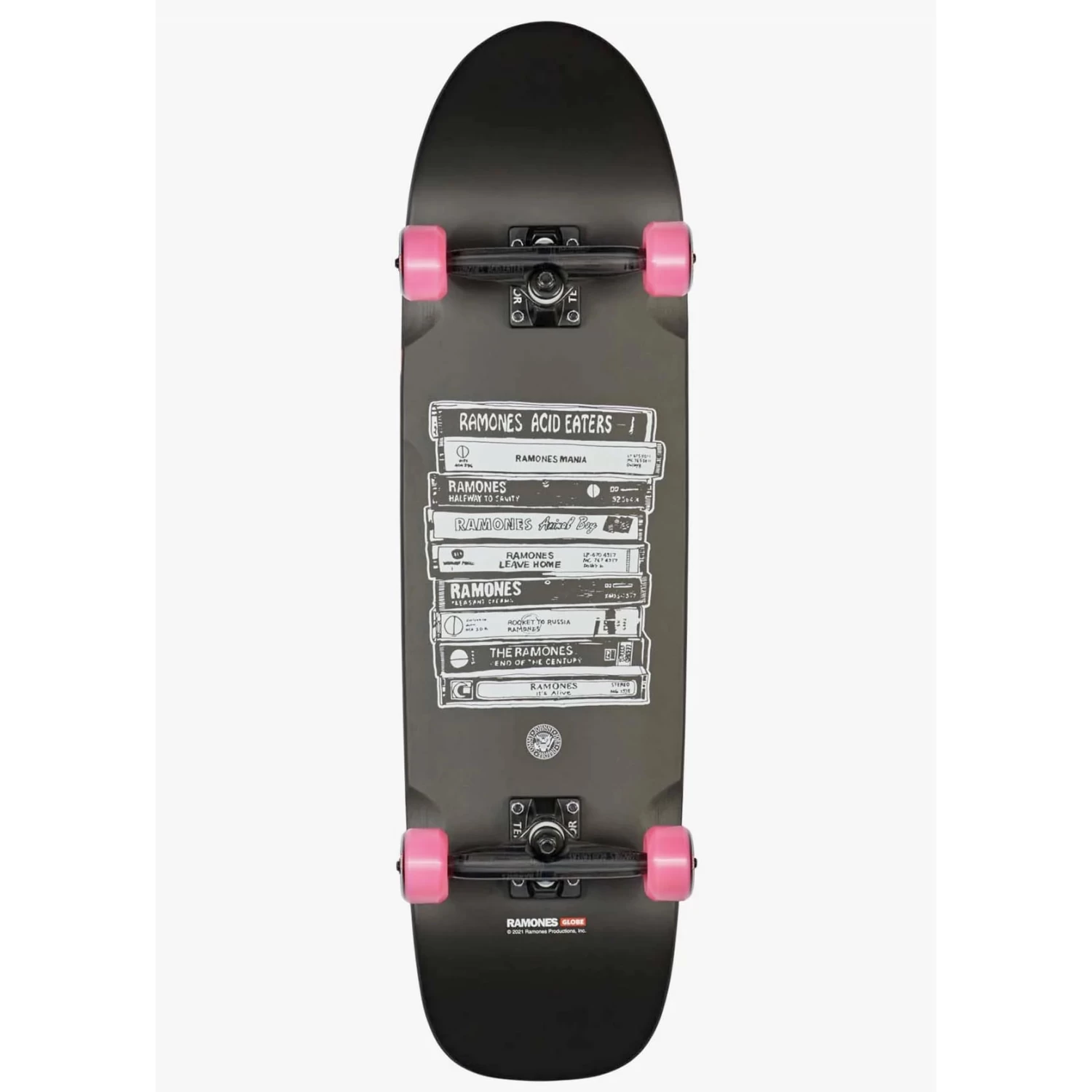 Shaped complete for having a good time whilst shredding. The Shooter 32 Cruiser Board in Ramones/Hey Ho features a deck with mellow concave, steep nose and tail kick, constructed from resin-7 hard rock maple and Canadian maple cross plies. This style also features 6.0” Tensor Alloy trucks, 55mm Conical 101a wheels and split black and printed grip tape. Iconic Ramones cassette-tape artwork on paint-dipped deck and split black grip tape with print.