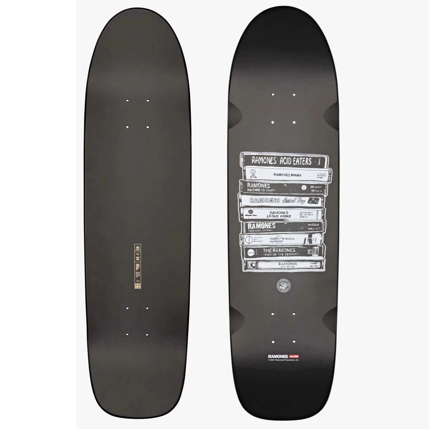 The Globe Ramones Shooter Hey Ho Skateboard Deck is a 8.625 shaped deck for having a good time whilst shredding. It is made of Resin-7 hard rock maple with Canadian maple cross plys with Mellow concave with steep nose and tail kick.