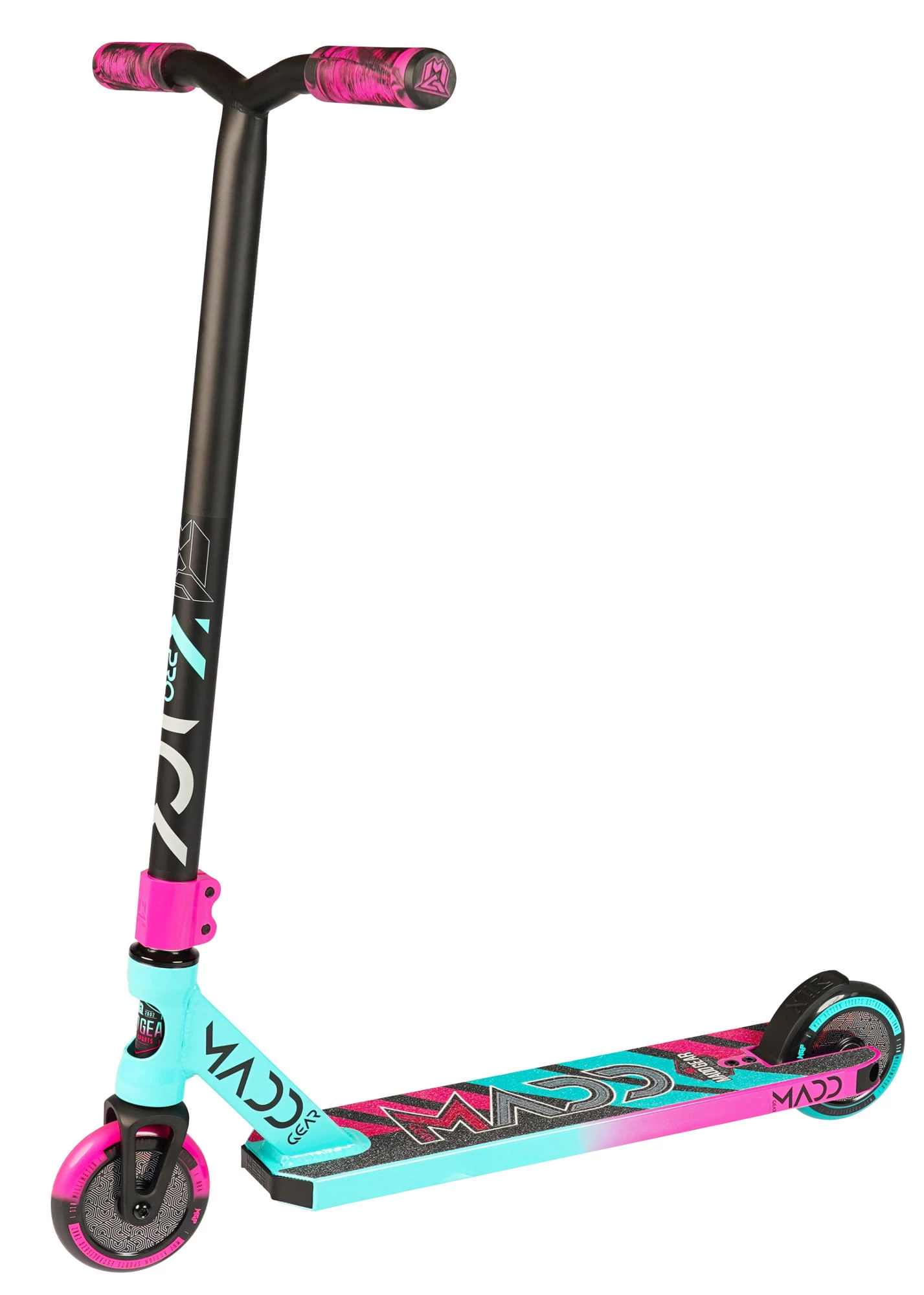 Designed for riders 6 years and up striking a perfect balance between weight and durability in the ideal size to take any young shredders riding to the next level. Every component of the Madd Gear Kick Pro Scooter was designed to produce the most balanced and smoothest rolling Kick Pro scooter ever! Whether you’re just riding to school or ripping down at your local skatepark, the Madd Gear Kick Pro Stunt Scooter is designed to stand up to the demands of today’s aspiring pro riders. Weighing just 3.1 kg / 6.9 lbs for the complete scooter.Weighing just 7.4 lbs, the MG Kick Kaos is the next scooter for you!