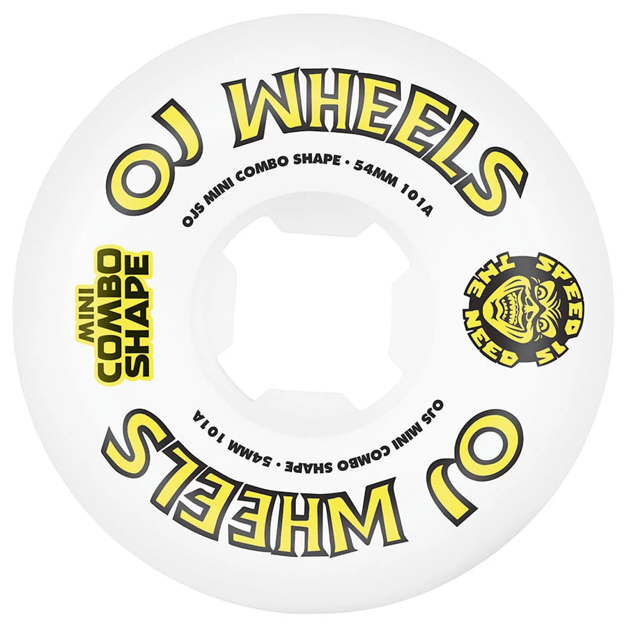The OJ Wheels Team Mini Combo 101A Skateboard Wheels features a wide asymmetrical shape cut with a round back and conical front. Original performance urethane provides a smooth and fast roll on most surfaces including the skatepark.
