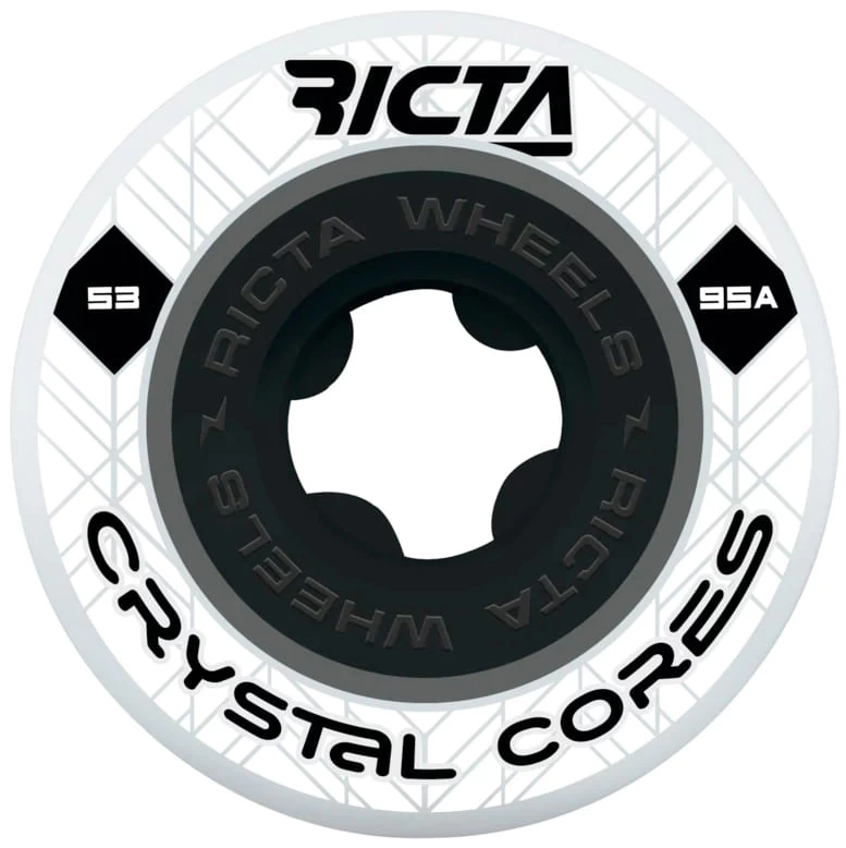 Crystal Cores feature Rictas new optically clear high-performance 95a urethane. 95a high-performance urethane offers a more forgiving durometer for rough terrain with easy, consistent slides youd normally only get on harder wheels. Rictas latest core design provides optimal speed, reduced rolling resistance, and maintains shape integrity on landings for easy rollaway.