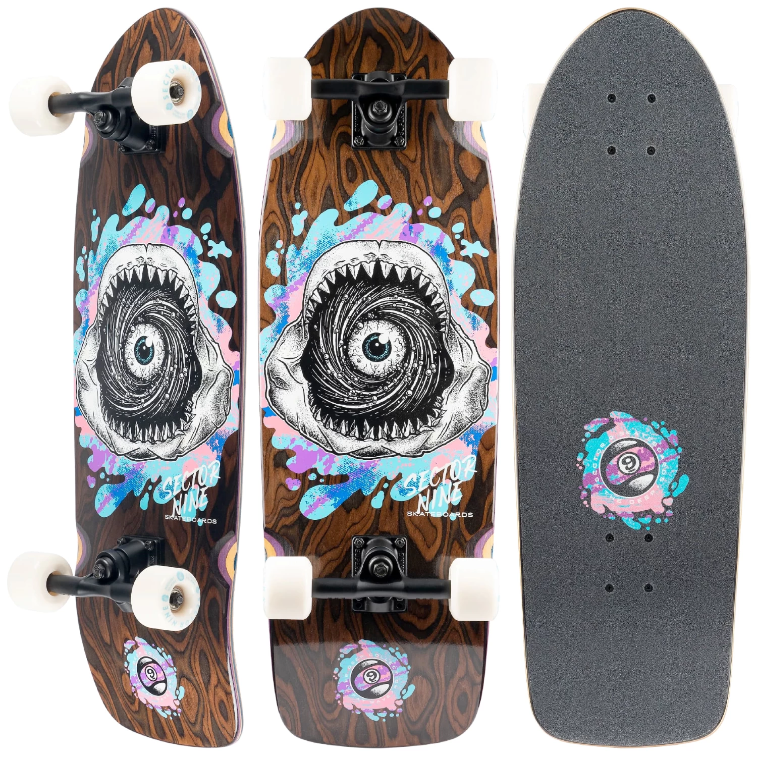 It’s time to broaden your perspective with a trip down below, to The Deep. Nate Reifke, a.k.a. Salty Timbers, is back with some mind-bending graphics from the abyss for the Sector 9 Fat Wave Fossil Longboard.