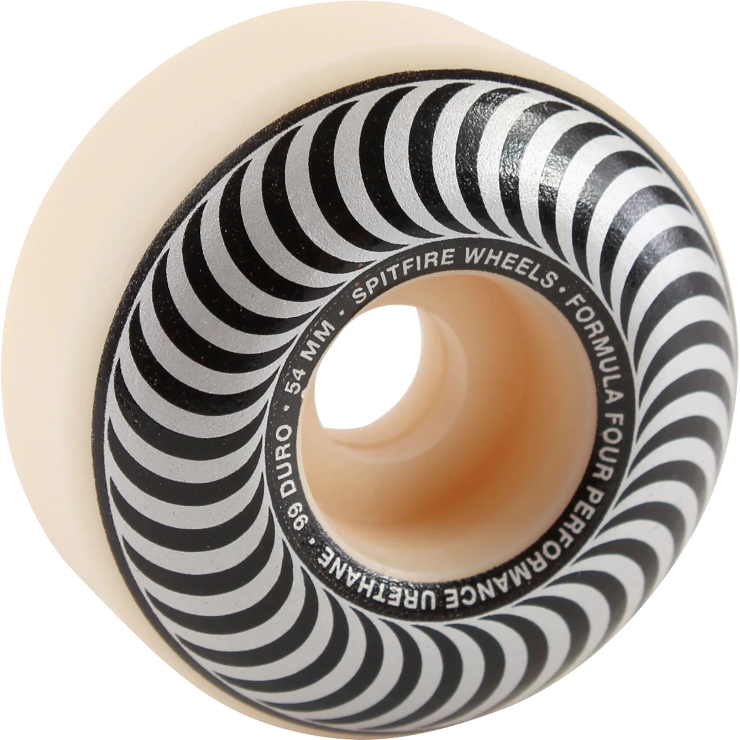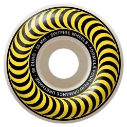 Made simple so you can skate hard. The Spitfire F4 Classic Skateboard Wheels are built to last! With several diameter options and 99a in hardness they provide a super smooth ride on the street or at the park. Spitfire Skateboard Wheels are sold in as a set of four wheels.