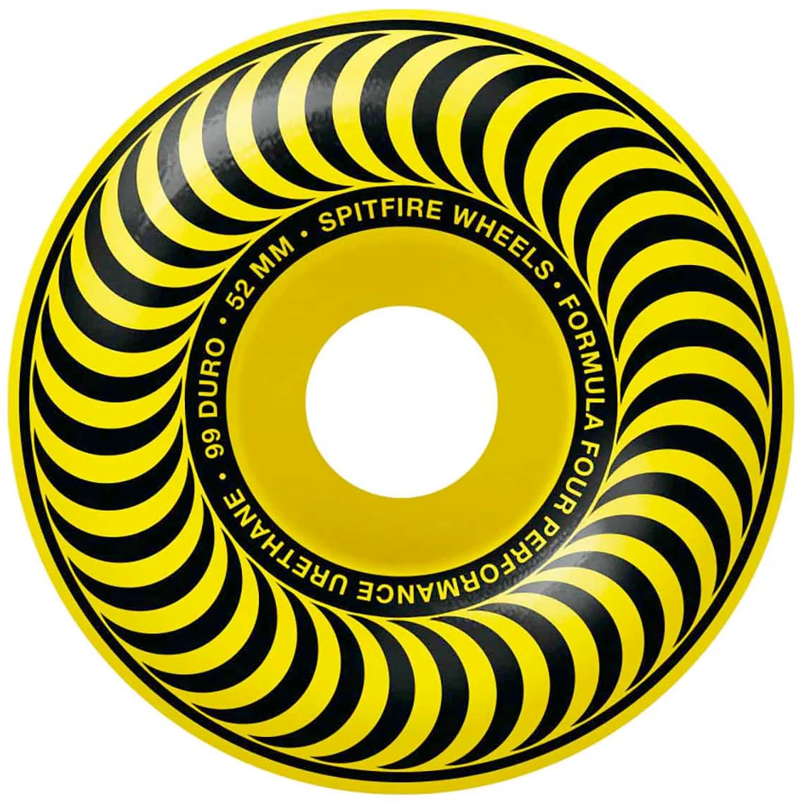 Made simple so you can skate hard. The Spitfire Formula Four Chroma Classic Skateboard Wheels are built to last! They measure 99D in hardness, providing a super smooth ride on the street or at the park. Spitfire Skateboard Wheels are sold in as a set of four wheels.