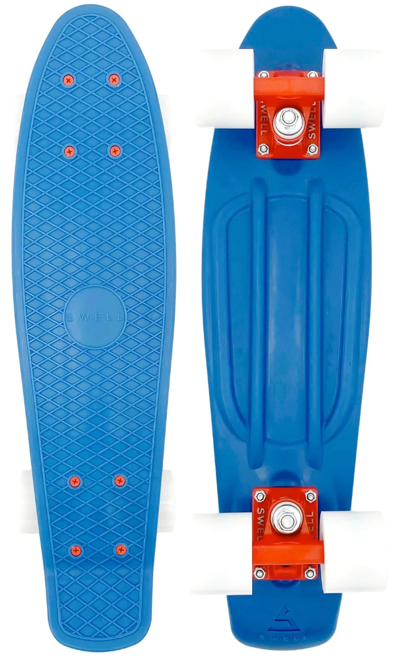 The Swell Oceans Blue Cruiser Skateboard was created from years of experience riding the streets of Santa Barbara and around Lake Tahoe. The high strength polymer deck has just enough flexibility(but not too much to so it will handle the daily use). It has a waffle non slip surface that never wears out, plus polyurethane wheels that are slightly larger than your typical board so you can get over those small imperfections in the road.