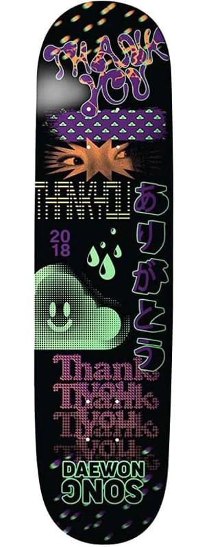 Build up the perfect board with the Thank You Song Fly Skateboard Deck. The Song Fly Skateboard Deck is built to last! Made from a 7 ply construction for durability, this deck gives a lot of board feel, for a super responsive ride on the street or at the park. Made simple so you can skate hard.